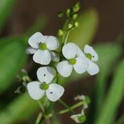 抽水植物(根は水底に固着して、茎や葉の一部が水の上に抜き出る植物)。常緑多年草。本州に分布。北米原産の帰化植物。雌株のみ帰化。地中をはう地下茎で新しい株をつくり広がる。3輪性の総状花序(花茎15~70cm)をつける。雌花は径約1.5cm、花弁は3枚で白色、中央部に緑色をした多数の雌蕊が集まる。冬は沈水葉をつけて越冬する。熱帯魚店で「ジャイアントサジタリア」の名で販売されているものと同じ。花期:4~9月。